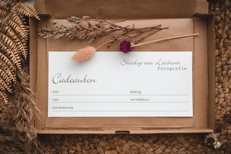 Iemand een blijvende herinnering cadeau geven? Dat kan! Geef iemand een cadeaubon voor een fotoshoot cadeau. De waarde bepaal jij zelf. Ik pak het mooi voor je in zodat het ook een echt cadeautje is om te geven!